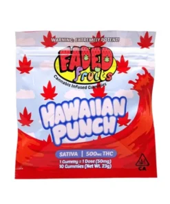 Faded Fruits Hawaiian Punch Gummies are THC-infused edibles inspired by the classic Hawaiian Punch flavor, popular for its sweet, tropical fruit blend. Each gummy is carefully infused with lab-tested THC, ensuring accuracy in dosing, purity, and safety.