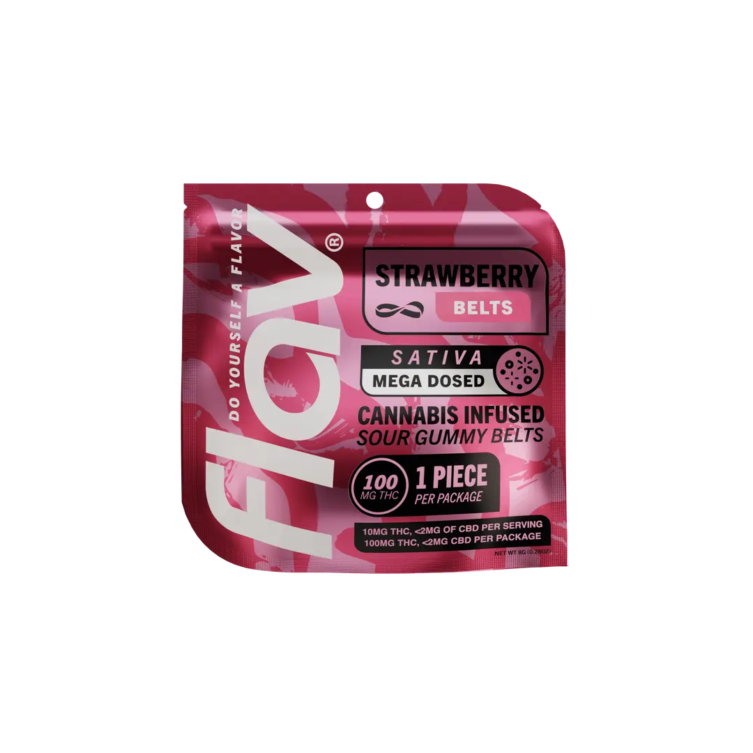 The first thing most people notice about Flav Strawberry Belt Gummies is the flavor. Each gummy bursts with the taste of fresh, sweet strawberries and a hint of tart candy-like tang — a delightful contrast to the earthy flavor of cannabis.